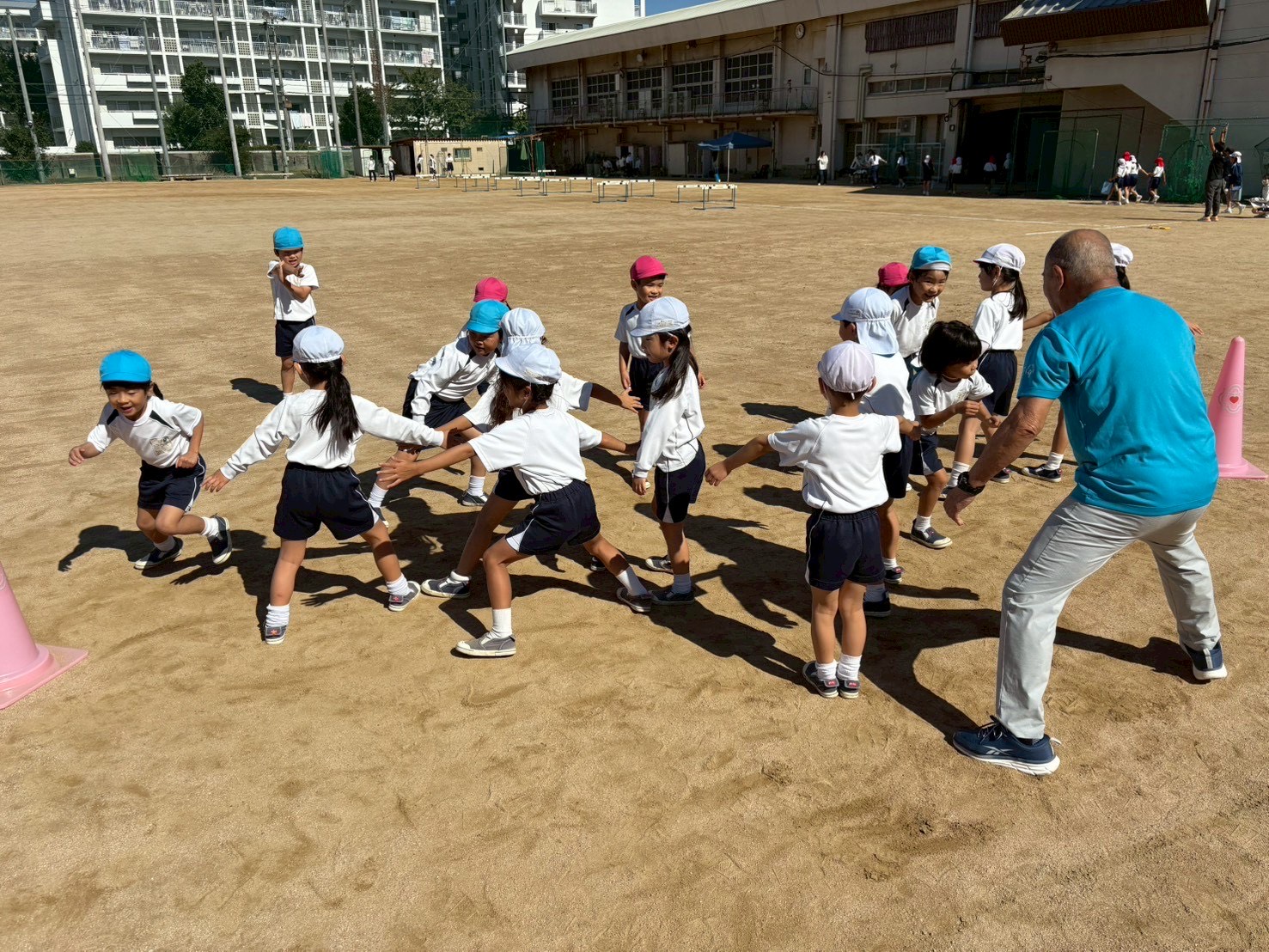 10月の運動遊びは【鬼ごっこ】をしました。線を引いて川に見立て、その中には“ワニ”が…ワニに捕まらないように、みんな夢中で川を渡り切ろうと頑張っていました!!みんなの真剣な表...