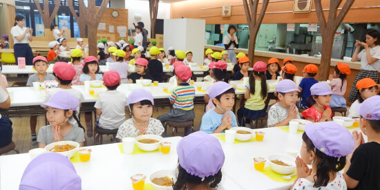 木のぬくもりを感じながら、楽しいランチタイムが過ごせる森のような食堂です。