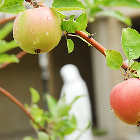 レンガ積みの外壁が味わい深い印象を与える学院のシンボルです。前室にはマリア像のコレクションが陳列されています。